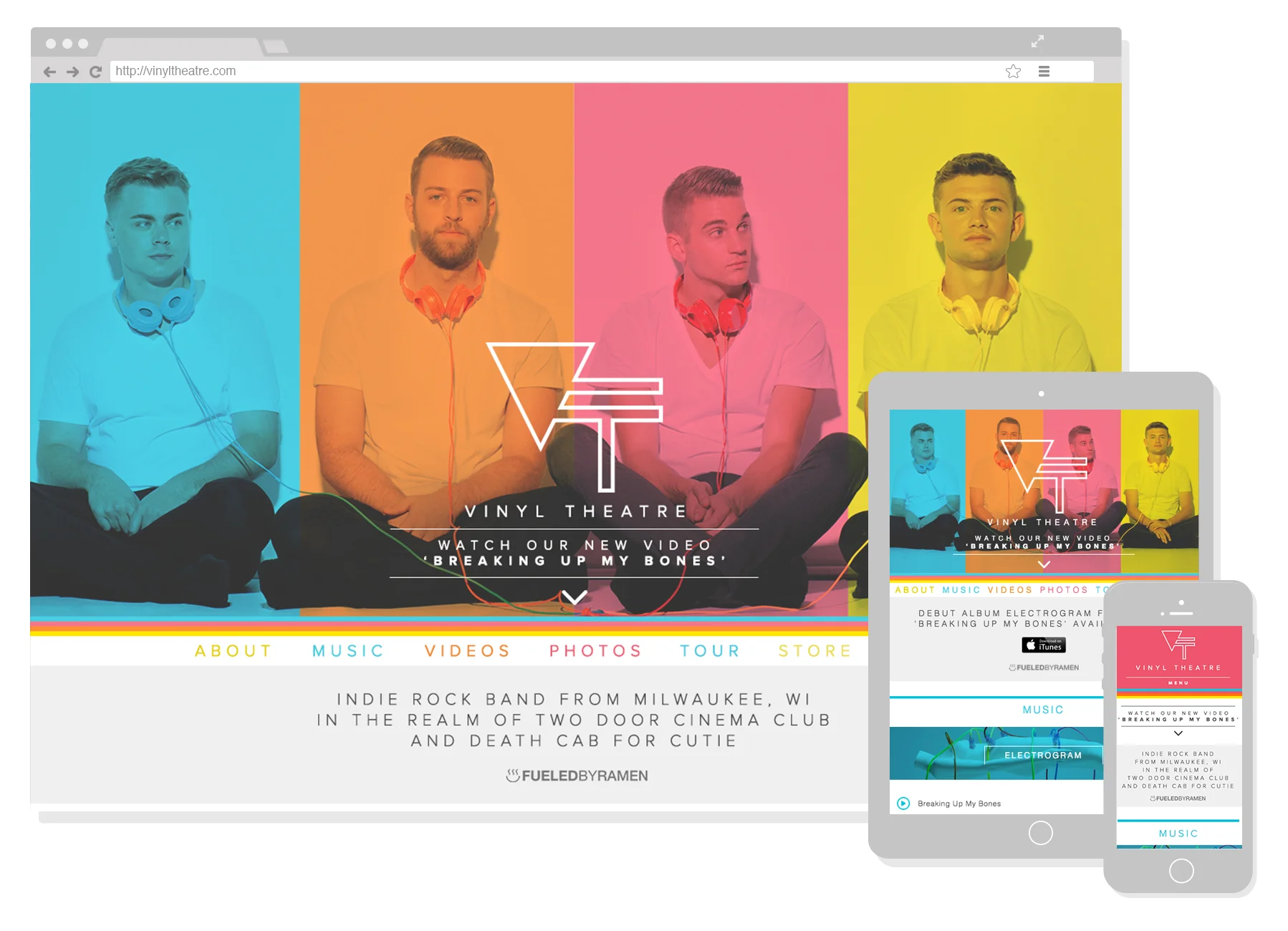 Taking the bright colors from Vinyl Theatre's album artwork, I created a simple one page website